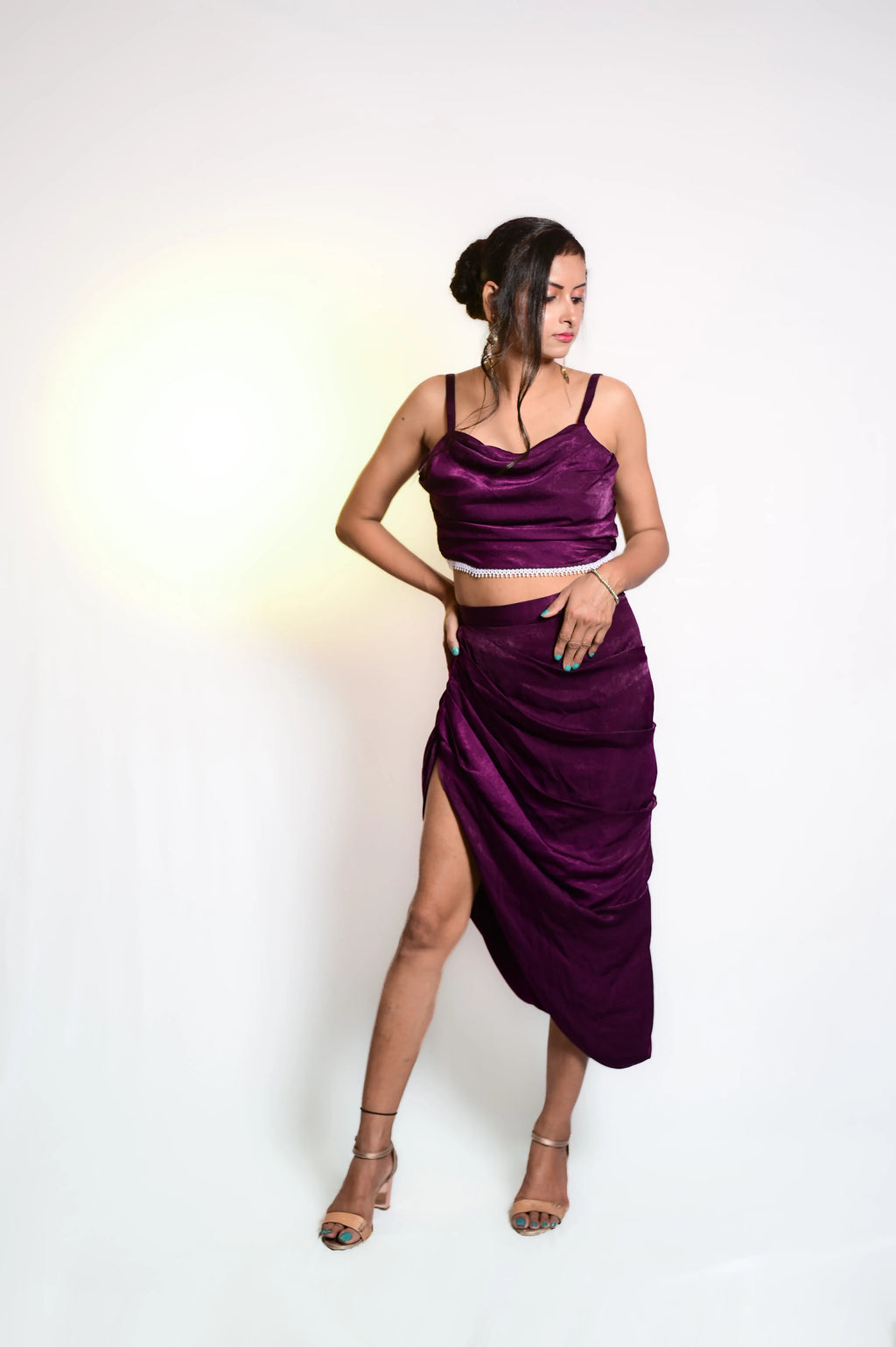 Handcrafted with soft Satin, color block pleated detailing in the front.