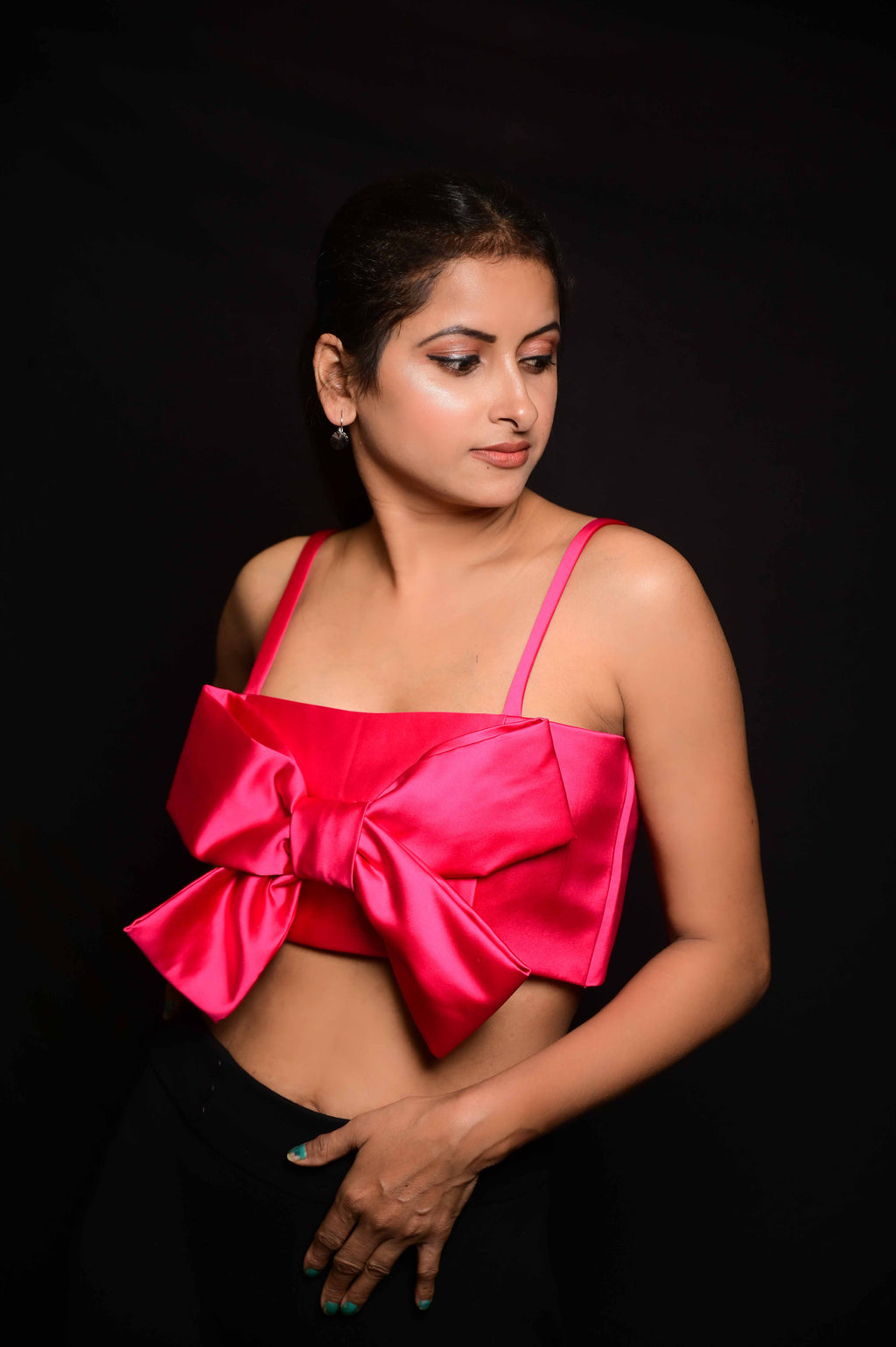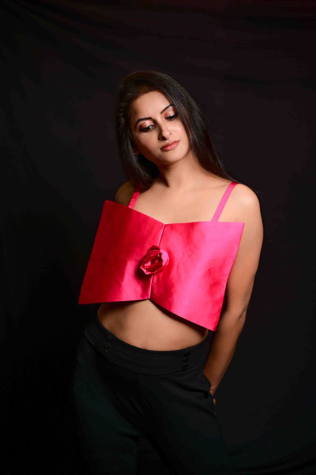 One shoulder Fuchsia Bow top.This top comes with Side concealed zip.