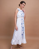 WHITE FLORAL COTTON ARINA MIDI DRESS