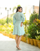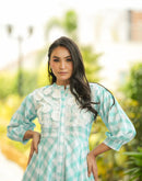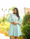 AURA MINT GINGHAM DRESS WITH LACE DETAIL & PUFFED SLEEVES