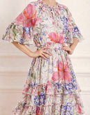 CHIFFON FLORAL KNEE LENGTH DRESS