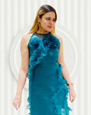 EMERALD GREEN RUFFLE ORGANZA DRESS FOR WOMEN
