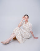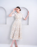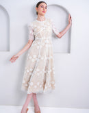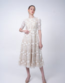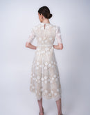 WHITE KATIE EMBROIDERED LONG MIDI DRESS