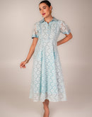 POWDER BLUE CROCHET LONG MIDI DRESS