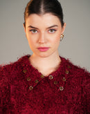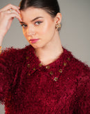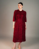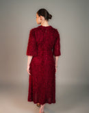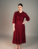 ROYAL CRIMSON FEATHER COLLAR MIDI DRESS